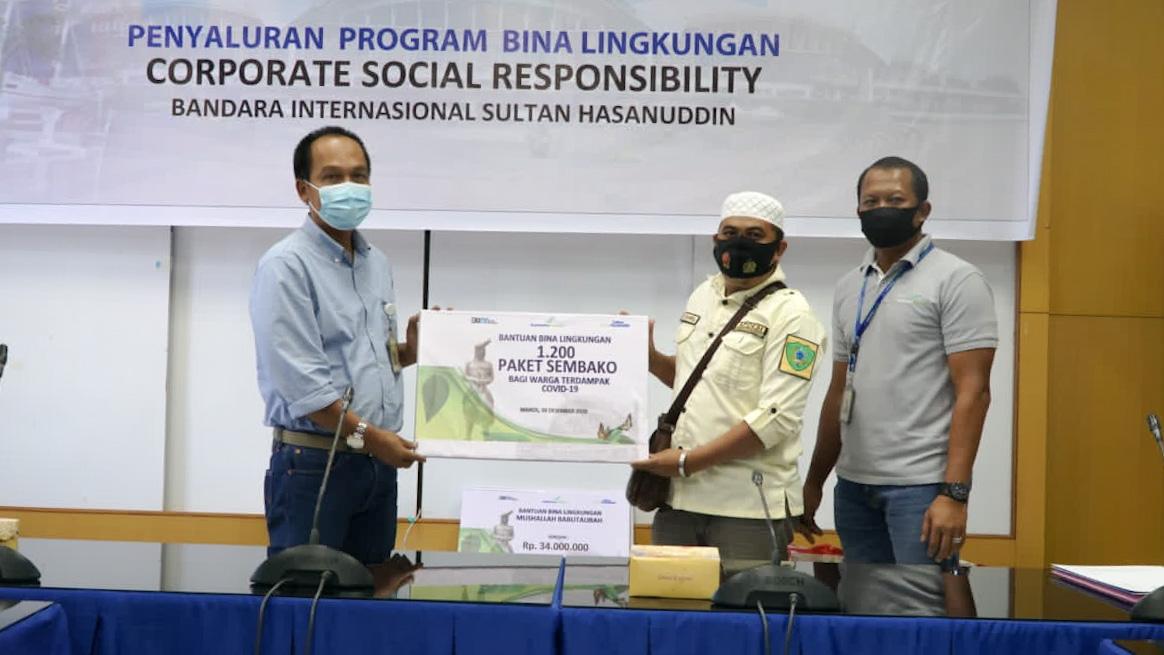 Online24, Maros – PT Angkasa Pura I (Persero) Bandara Internasional Sultan Hasanuddin kembali menyalurkan Bantuan Bina Lingkungan berupa sembako untuk warga tedampak COVID-19 dan biaya renovasi sarana ibadah. Penyerahan bantuan ini dilakukan secara simbolis oleh General Manager Bandara Internasional Sultan Hasanuddin di Kantor Cabang Bandara Internasional Sultan Hasanuddin.