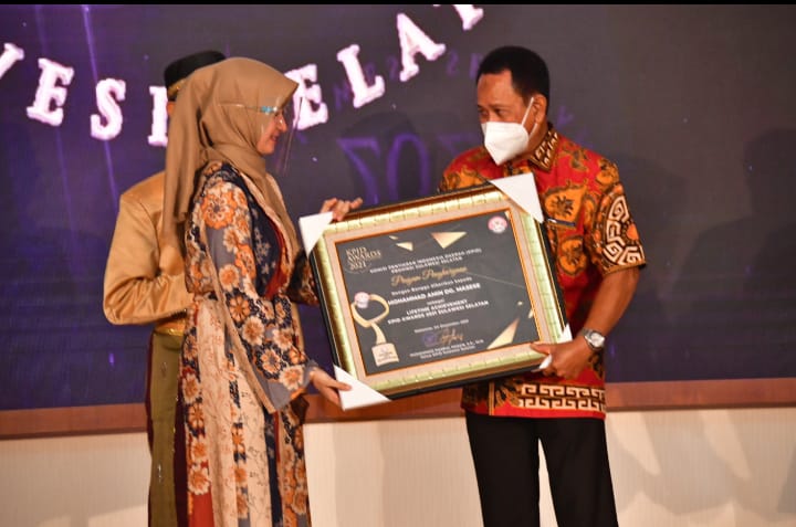 Atas dasar itulah KPID Sulawesi Selatan, Memberikan Penghargaan yang diberikan pada anaknya yakni Maladi Amin. di Baruga Karaeng Pattingalloang Rumah Jabatan Gubernur Sulawesi Selatan, Sabtu 4 Desember 2021.