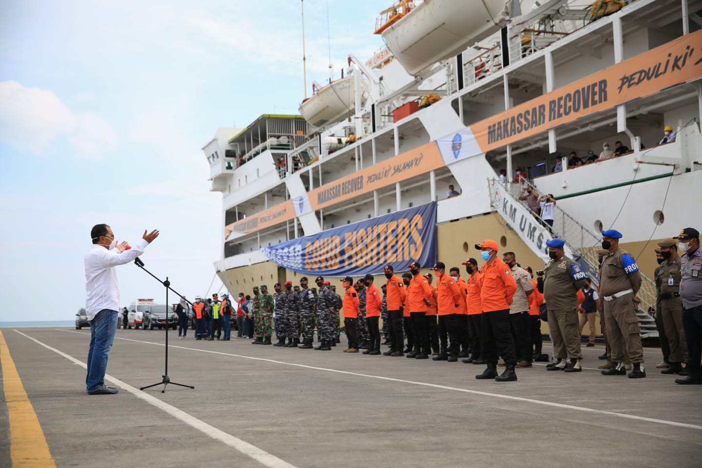 Online24, Makassar – Walikota Makassar, Danny Pomanto bersama seluruh jajarannya, menggelar simulasi pengoperasian Isolasi Apung Kapal Pelni KM Umsini, di dermaga Pelabuhan Soekarno-Hatta, Makassar, Minggu (1/8/2021).