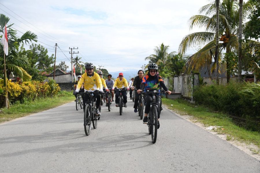 “Ayo, kita bersepeda dengan santai. Santai-santai saja ya, lihat kondisi lapangan, dan tetap mengikuti Patwal. Yang paling penting, jangan ganggu pengguna jalan yang lain. Mari memulainya dengan berdoa,” ajak Bupati Perempuan pertama di Sulsel ini.