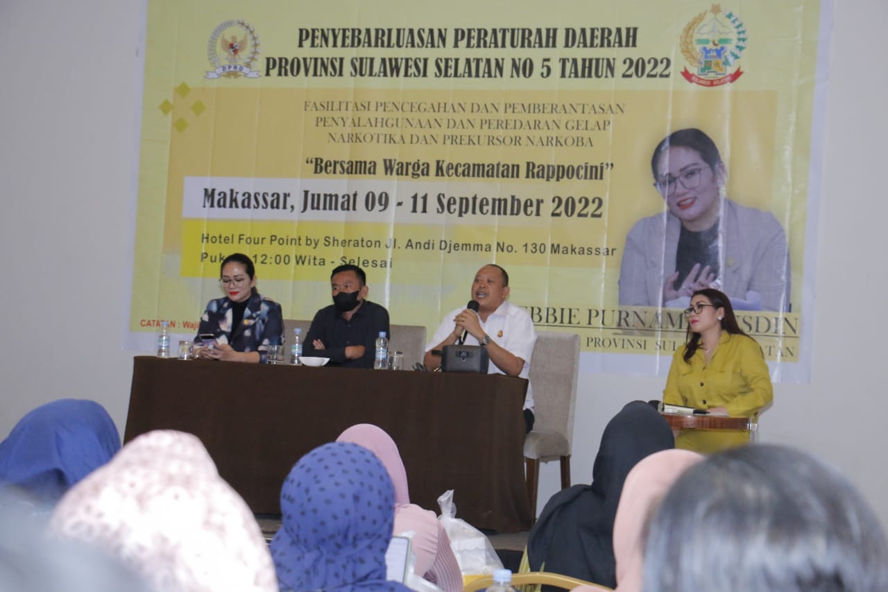 “Saya sangat senang sekali bertemu dengan warga Rappocini. Hari ini saya membawakan Perda baru untuk peraturan daerah baru penyebarluasan peraturan daerah di provinsi Sulawesi Selatan Tahun 2022 yaitu fasilitasi pencegahan dan pemberantasan penyalahgunaan narkotika,” kata Debbie Rusdin.