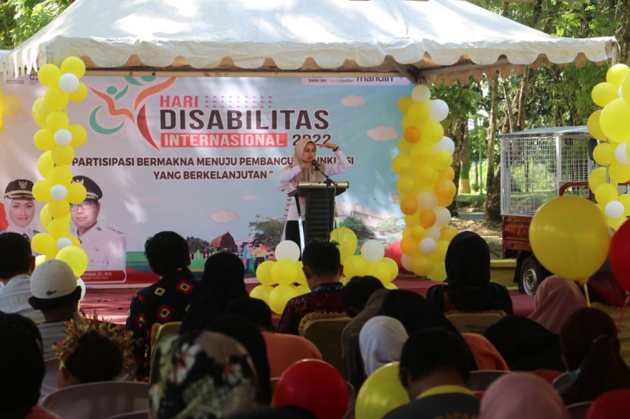 Hal itu disampaikan Indah saat menghadiri Hari Disabilitas Internasional (HDI) 2022 di pelataran Kantor Bupati Luwu Utara, Jumat (9/12/22). “Kita berharap pihak perbankan memberikan kesempatan kepada para penyandang disabilitas, agar mereka berpartisipasi mendapatkan kesempatan yang sama,” tuturnya.