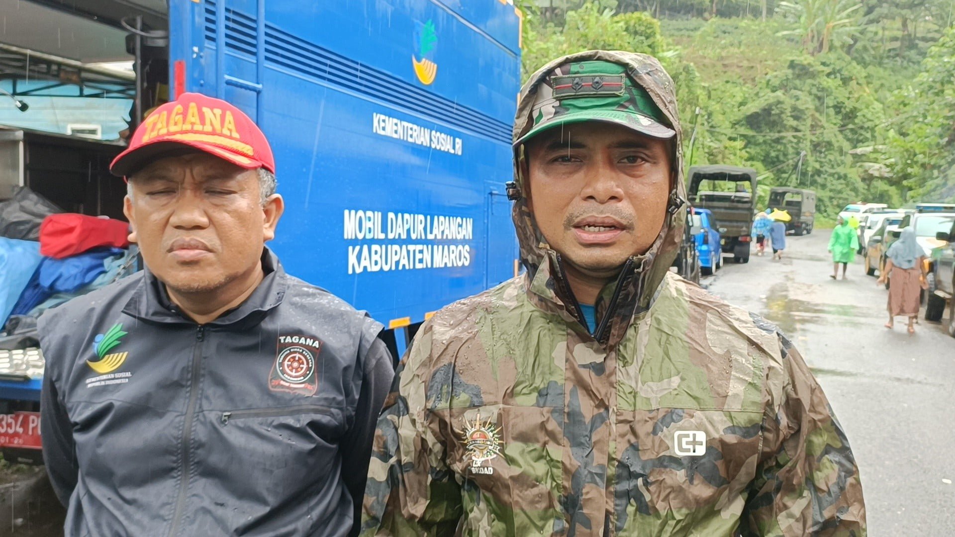 Komandan Kodim 1422/Maros, Letkol Inf Muhammad Hujairin memimpin langsung proses pencarian para korban serta pembersihan material longsor yang menutupi akses jalan Nasional Poros Maros-Bone.