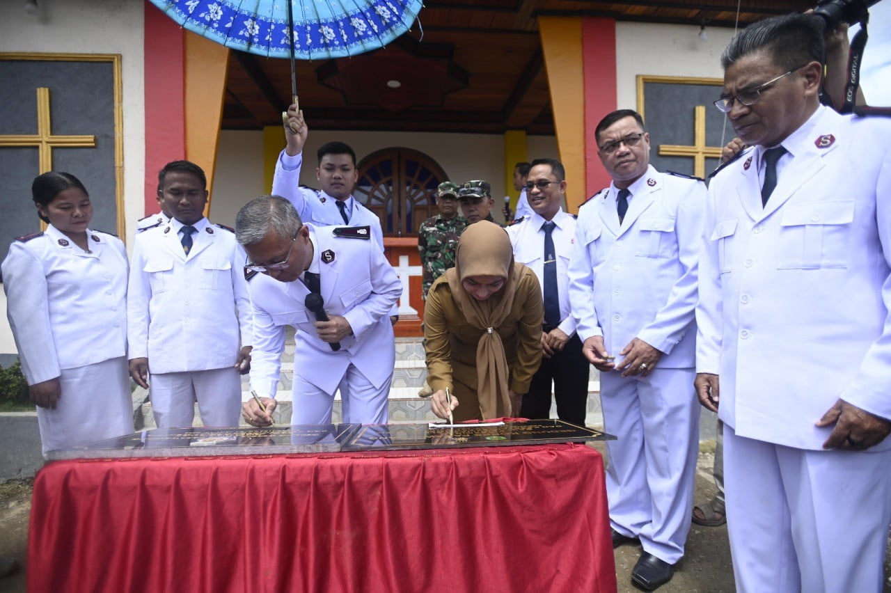Berkunjung Dusun Parahaleang, Desa Marante Kecamatan Seko, Indah Putri Indriani meresmikan Gereja Bala Keselamatan Korps Parawaleang. Selasa (24/01/2023)