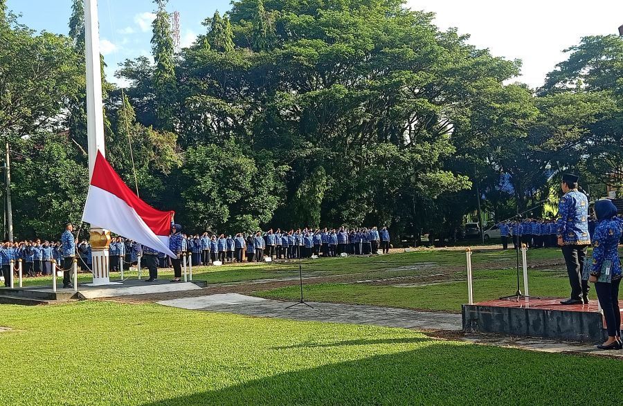 Hal ini ditegaskan Sekretaris Daerah, Armiadi, saat membaca sambutan Bupati pada upacara Hari Kesadaran Nasional (HKN), Jumat (17/3/2023), di Lapangan Upacara Kantor Bupati. “Salah satu wujud tanggug jawab yang harus kita tunjukkan sebagai seorang aparatur negara adalah kedisiplinan menghadiri upacara Hari Kesadaran Nasional,” tegas Sekda Armiadi.