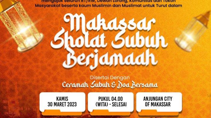 Agenda tersebut bertajuk ‘Makassar Salat Subuh Berjamaah’ disertai ceramah subuh dan doa bersama.