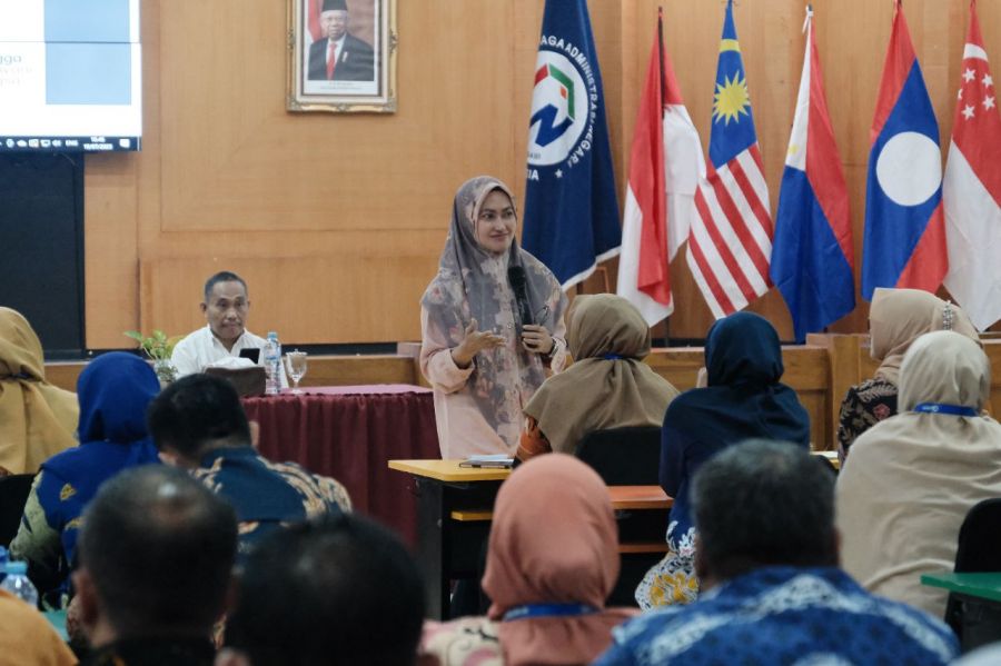 Online24,Makassar – Di hadapan 82 peserta PKA LAN  Makassar Angkatan V  dari pelbagai daerah di Indonesia, Bupati Luwu utara, Indah Putri Indriani memaparkan materi manajemen perubahan di sektor publik.