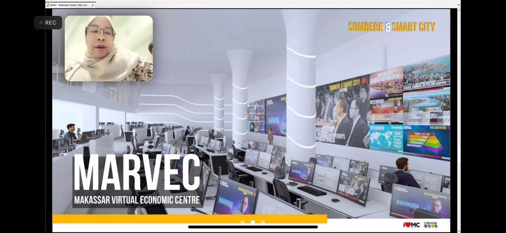 Mewakili Danny Pomanto, Plt. Kepala Dinas Komunikasi dan Informatika (Diskominfo) Kota Makassar, Ismawaty Nur memaparkan visi-misi Makassar Sombere’ & Smart City. Berlangsung melalui zoom meeting. Kamis, (21/9/2023).