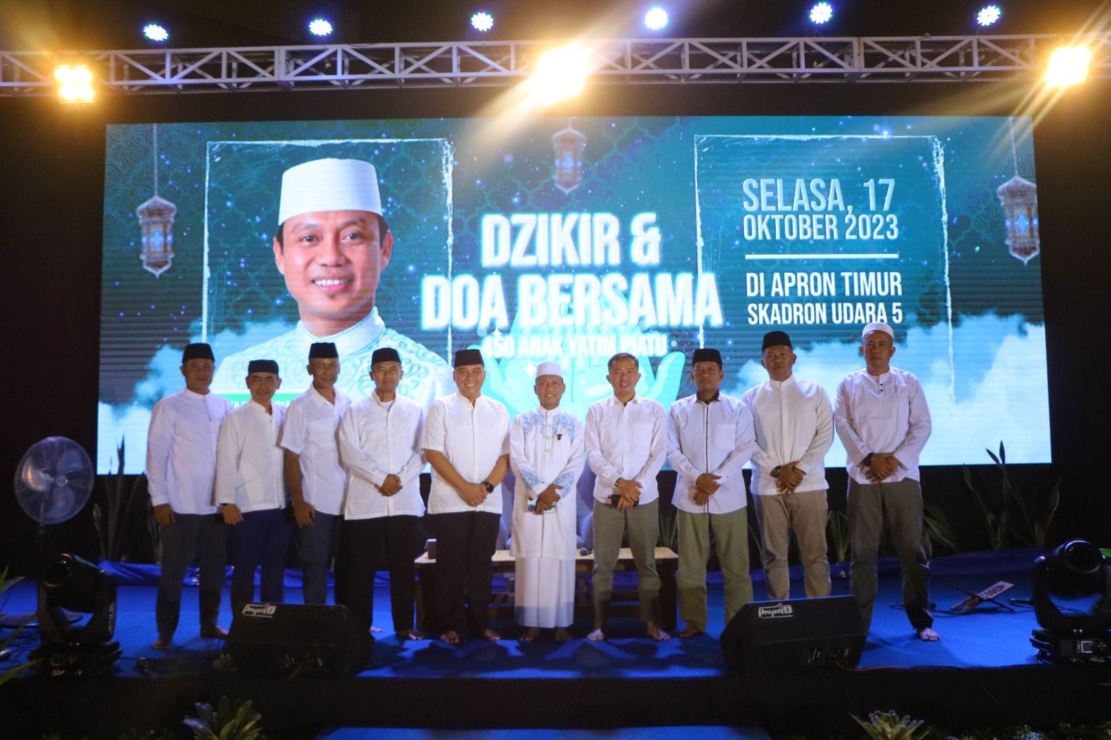 Online24,Maros,–Skadron Udara 5 Wing Udara 5 Lanud Sultan Hasanuddin menggelar dzikir dan doa bersama yang diikuti oleh seluruh personel beserta keluarga dan 450 anak yatim di apron timur Skadron Udara 5, Selasa (17/10/2023).