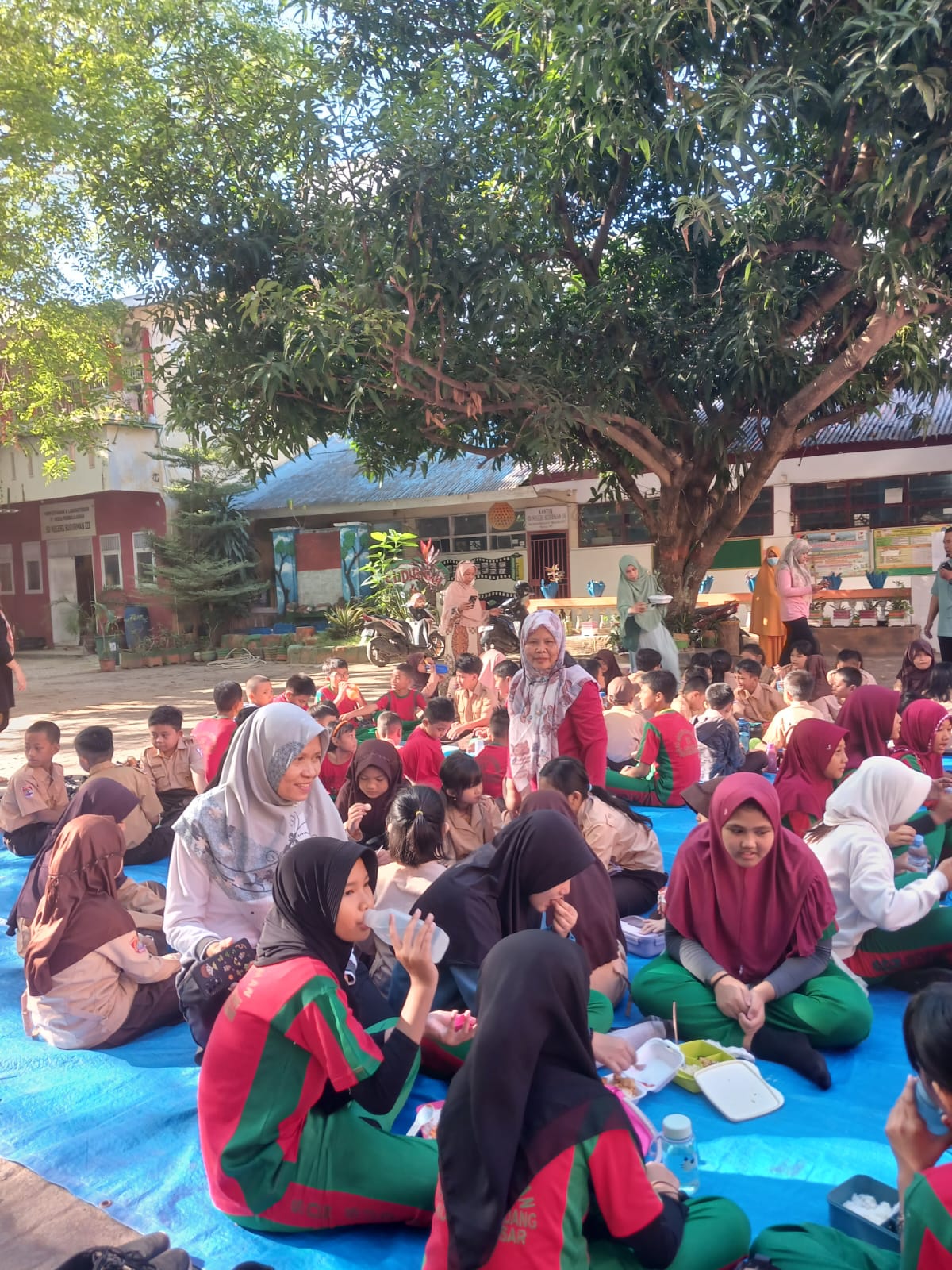 Setelah itu seluruh siswa makan bekal makanan dari rumahnya secara bersama-sama dengan guru-guru di lapangan sekolah.