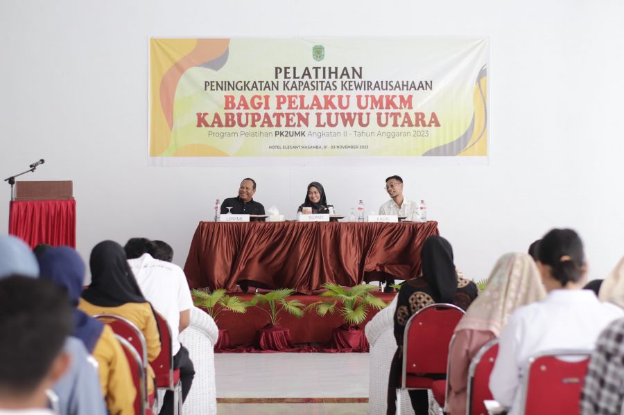 Online24, Makassar – Bupati Luwu Utara, Indah Putri Indriani secara resmi membuka Pelatihan Peningkatan Kapasitas Koperasi, Usaha Mikro dan Kecil (PK2UMK) angkatan ke-2 di Hotel Elegant Masamba, Rabu (1/11/2023).