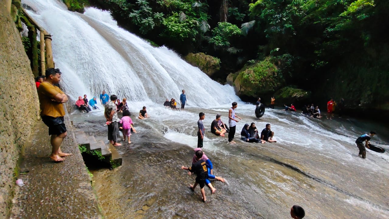 Online24,Maros-Ribuan pengunjung memadati Kawasan Wisata Alam Air Terjun Bantimurung, di Kabupaten Maros, Sulawesi selatan, pada momentum libur Natal 2023.