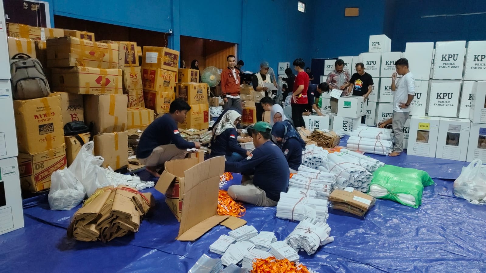 Online24,Maros,-Pengepakan logistik Pemilihan Umum Tahun 2024 di Gudang Logistik KPU Maros mulai dilakukan,Kamis,1 Februari 2024.