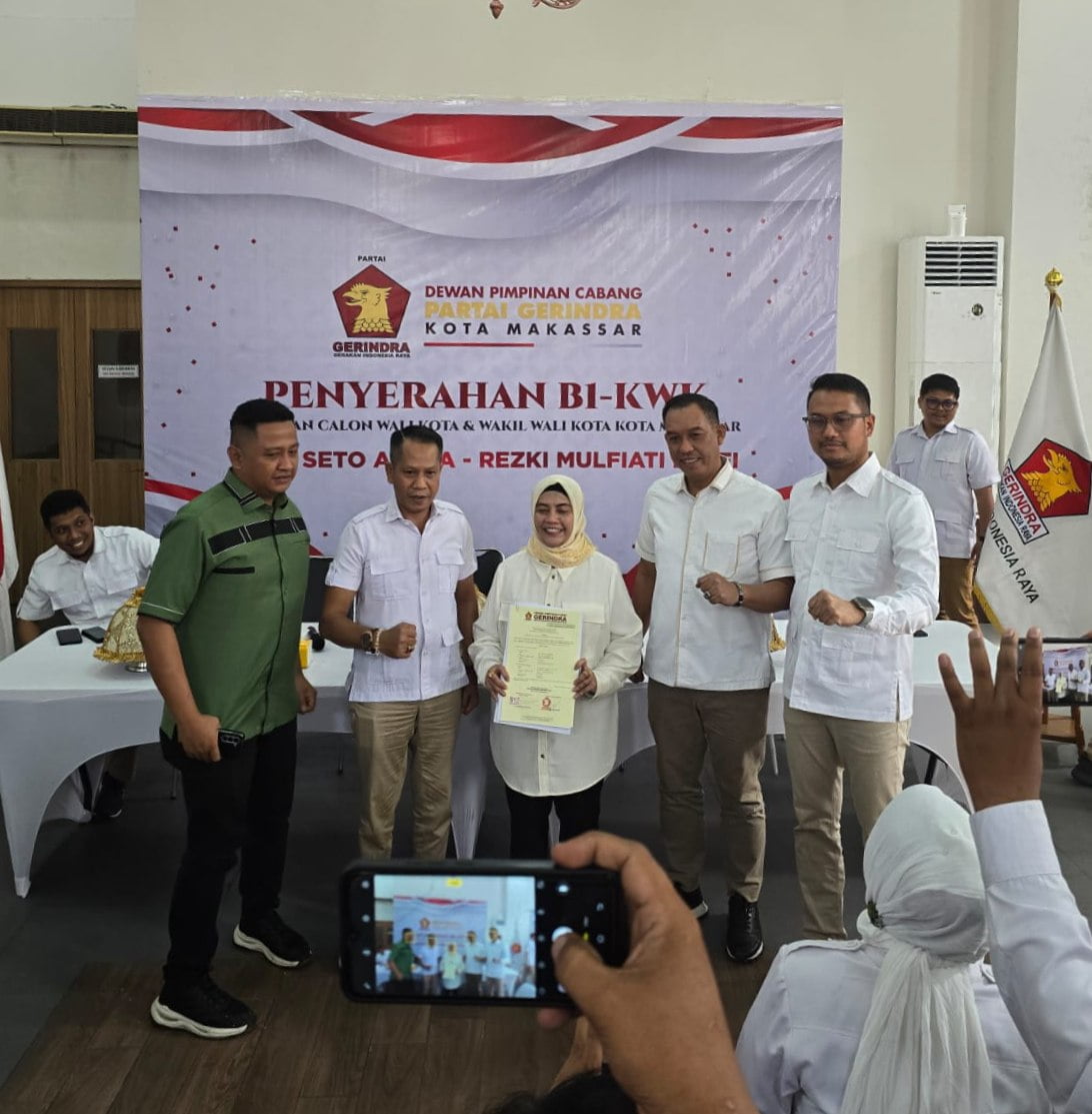 Penyerahan B1.KWK tersebut dilakukan langsung oleh Ketua DPC Partai Gerindra Sinjai, Fachriandi Matoa kepada pasangan tersebut di Makassar, Senin, 26 Agustus 2024.