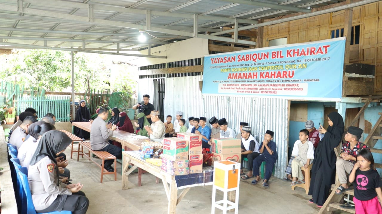 Dalam kunjungannya Karo SDM Polda Sulsel disambut Ketua Panti Asuhan Harno Arafah, pengurus yayasan dan para anak santri.
