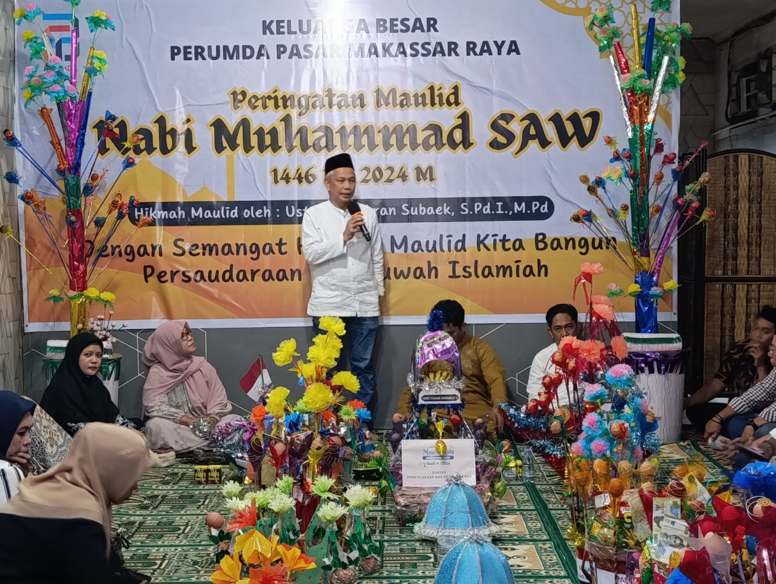 Online24jam, Makassar, – Jumat Berkah di Perumda Pasar Makassar Raya (Karya) diwarnai dengan peringatan Maulid Nabi Muhammad SAW. Dalam kegiatan tersebut seluruh element Perumda Pasar Makassar bersama sama menyimak hikmah Maulid yang digelar diruang rapat Perumda Pasar Makassar.
