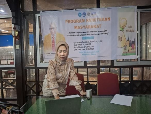 Online24, Makassar  – Dalam rangka meningkatkan penyusunan laporan keuangan Desa, Program Pengabdian Masyarakat Fakultas Ekonomi dan Bisnis Universitas Negeri Makassar (UNM), menggelar kegiatan workshop yang bertema “Pelatihan Penyusunan Laporan Keuangan Kelurahan Di Wilayah Kecamatan Pamboang”.