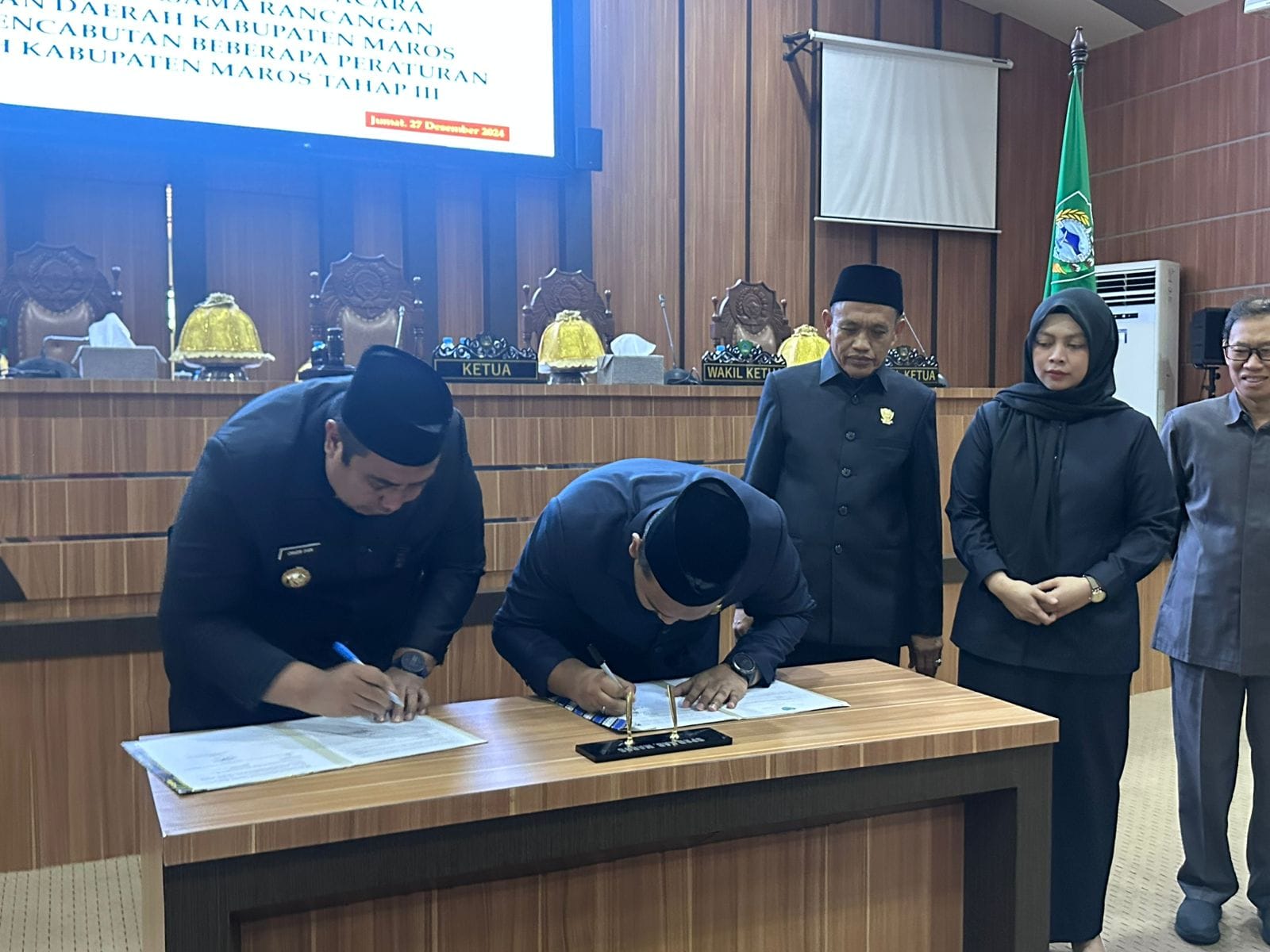 Keputusan ini diambil dalam rapat paripurna yang digelar di Ruang Utama DPRD Maros, Jumat, 27 Desember 2024.