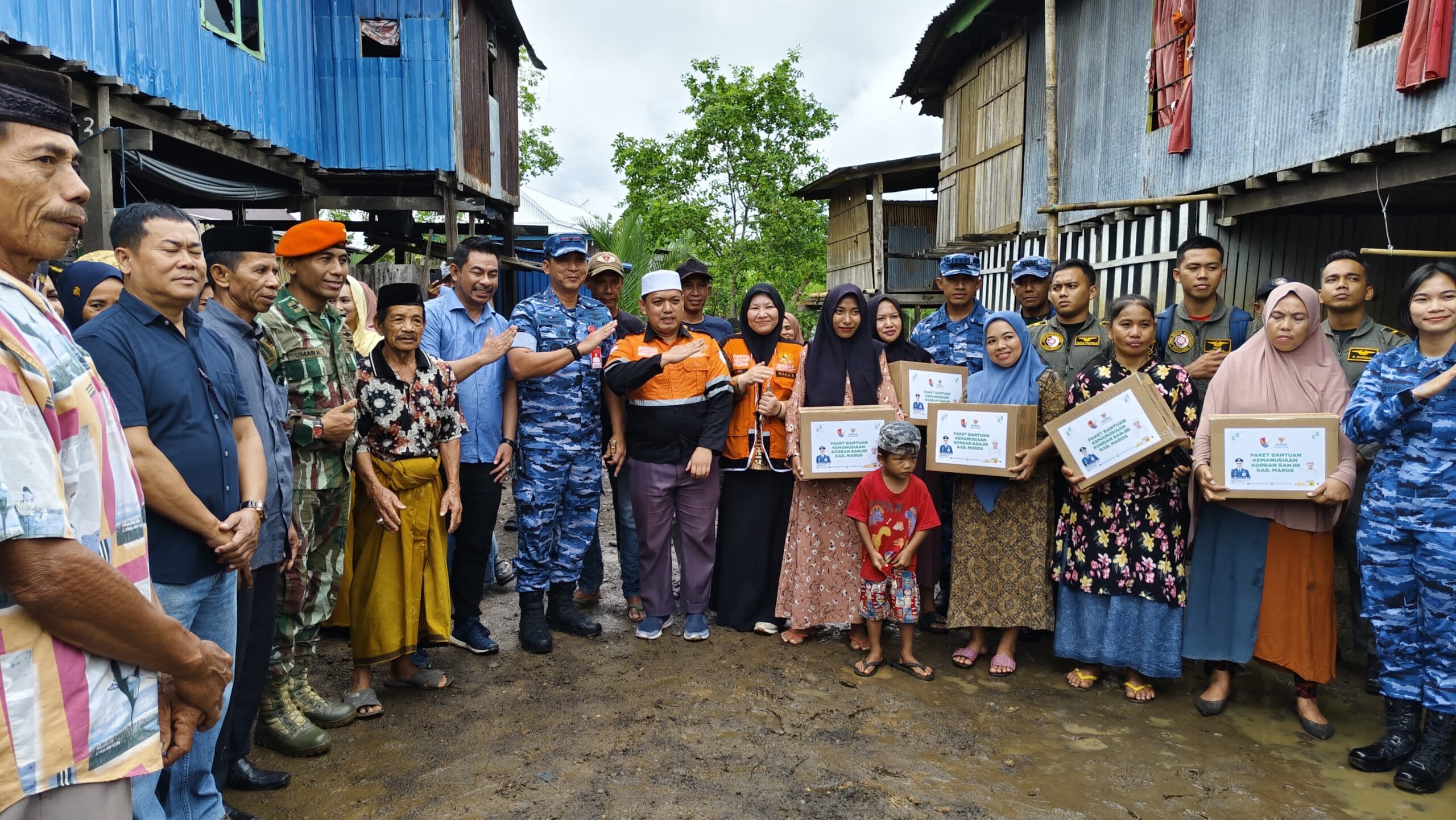 Komandan Lanud menyampaikan, total bantuan yang disalurkan mencapai 600 paket sembako, yang didistribusikan ke beberapa titik lokasi terdampak.