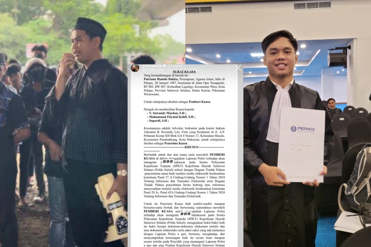 Melalui story instagram pribadinya, Putri Dakka mengunggah sebuah dokumen surat kuasa kepada 3 orang pengacara untuk melaporkan @sosmedmakassar di Polda Sulsel atas dugaan tindak pidana UU ITE.