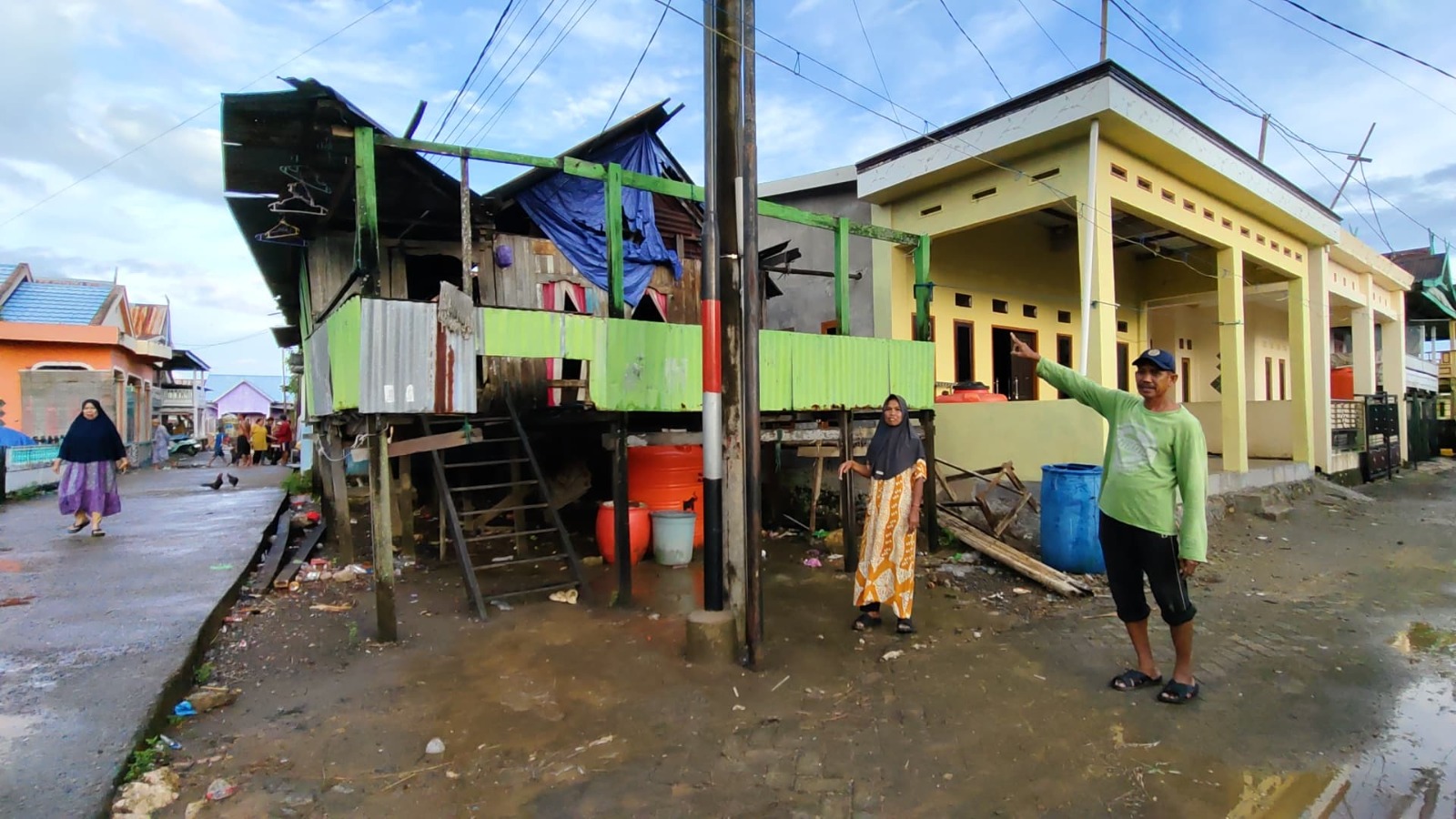 Kondisi rumah mereka sungguh memprihatinkan. Jika hujan turun, bagian dalam rumah basah karena atap yang bocor. Saat angin kencang datang, keluarga ini hanya bisa menggigil karena banyak bagian atap sudah hilang. Teras rumah panggung mereka pun sudah hilang sebagian, lapuk dimakan usia.