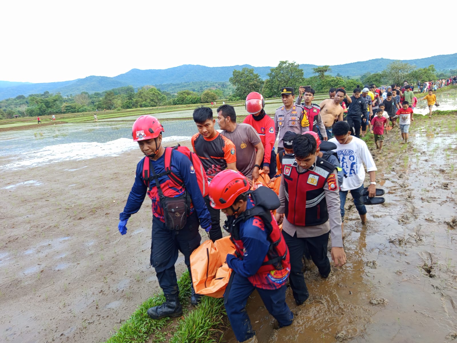 Jenazah korban ditemukan mengapung sejauh enam kilometer dari lokasi awal ia terseret arus saat tengah berwisata bersama tiga rekannya di salah satu tempat wisata alam yang tengah viral.