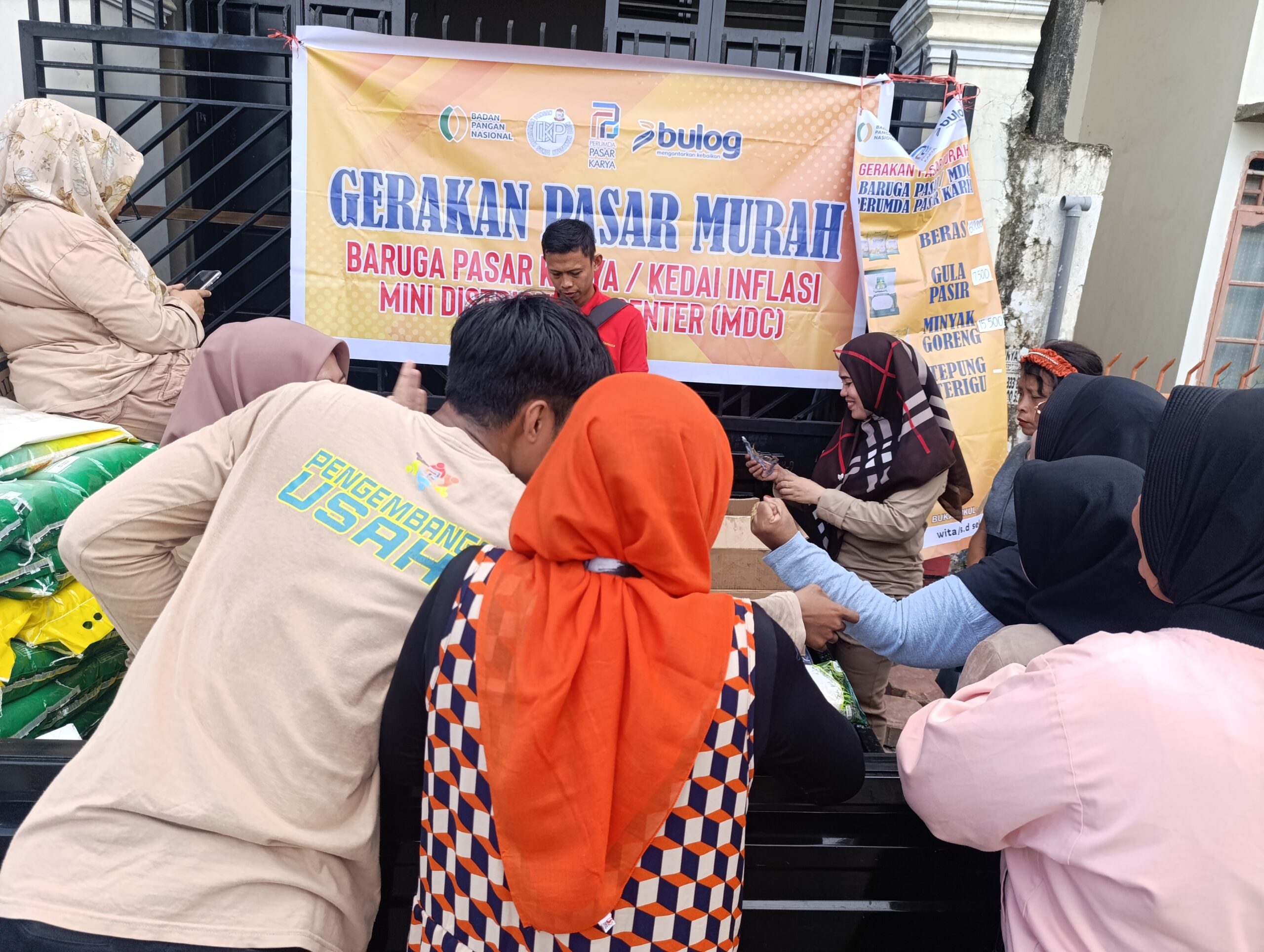 Untuk pemerataan, setiap warga dibatasi maksimal pembelian 2 sak beras (10 kg), 2 liter minyak goreng, dan 2 kg gula pasir.
