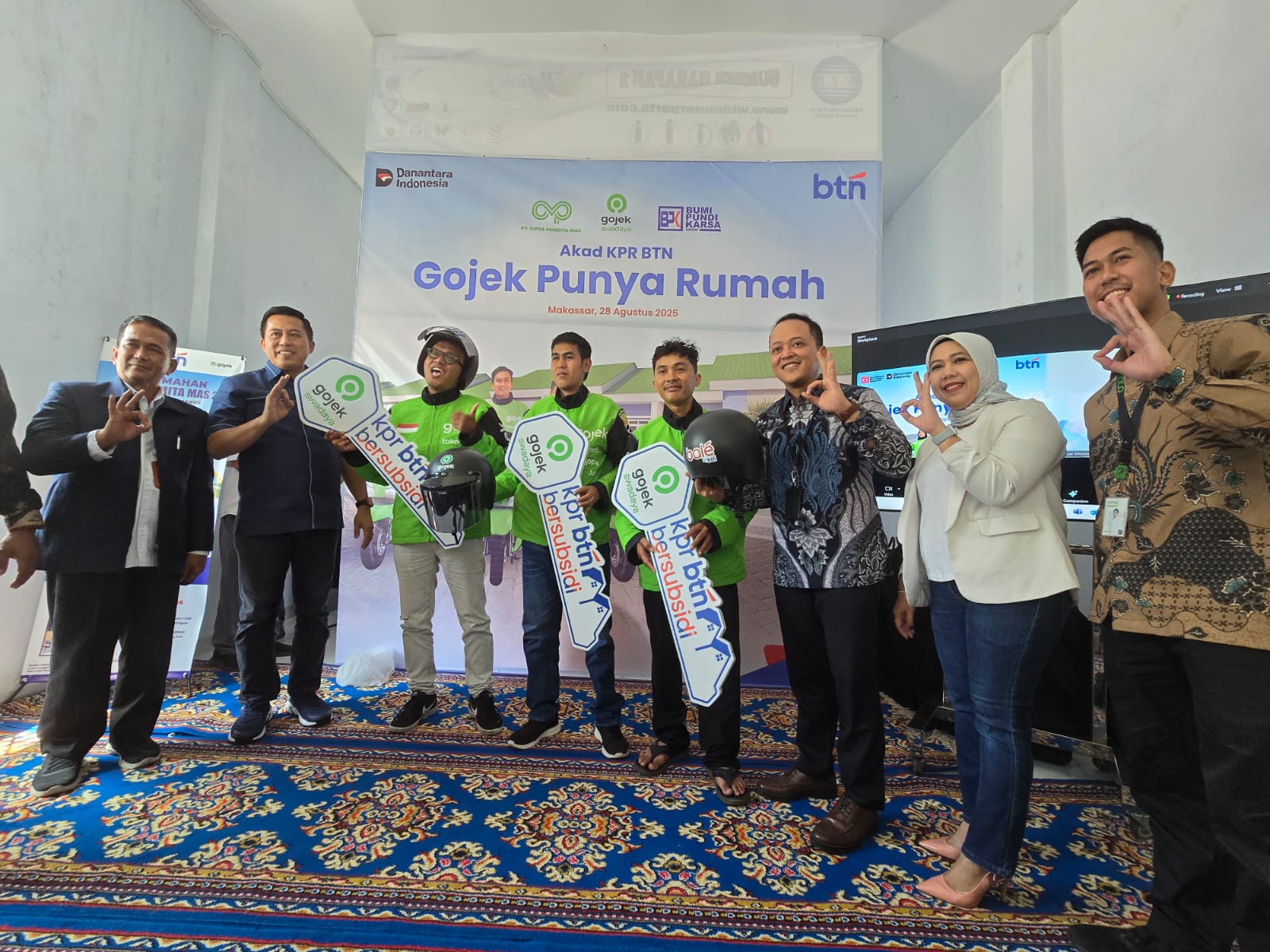 Online24jam,Maros, 28 Agustus 2025 — Impian para pengemudi ojek online (ojol) untuk memiliki rumah akhirnya terwujud. Program kolaborasi antara Bank BTN, Gojek, dan pengembang PT. Bumi Pundi Karsa Group secara resmi diluncurkan hari ini dengan agenda akad kredit dan penyerahan kunci rumah secara simbolis.