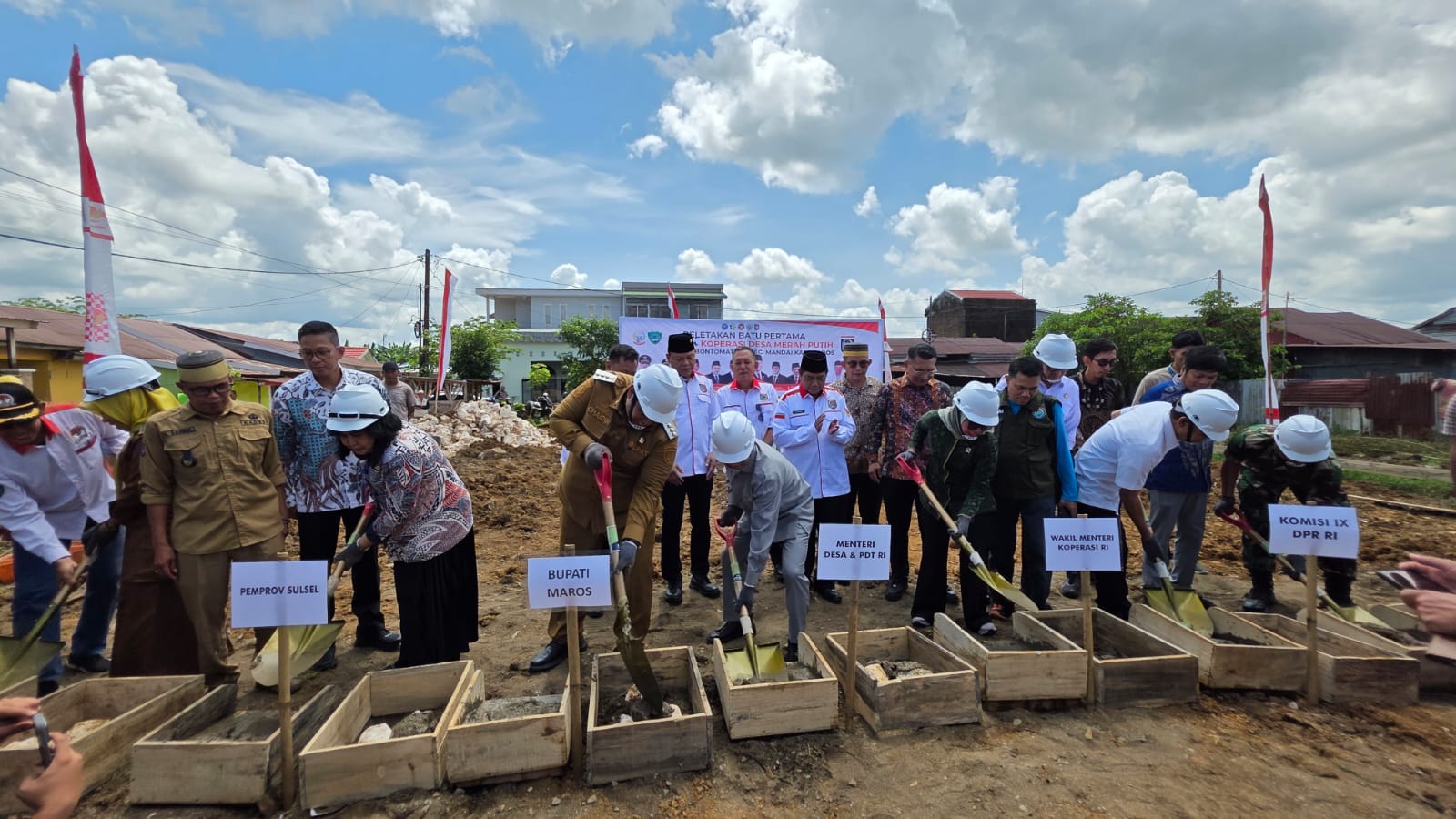 Mendes PDTT & Wamen Koperasi Resmikan Peletakan Batu Pertama Kopdes Merah Putih di Maros