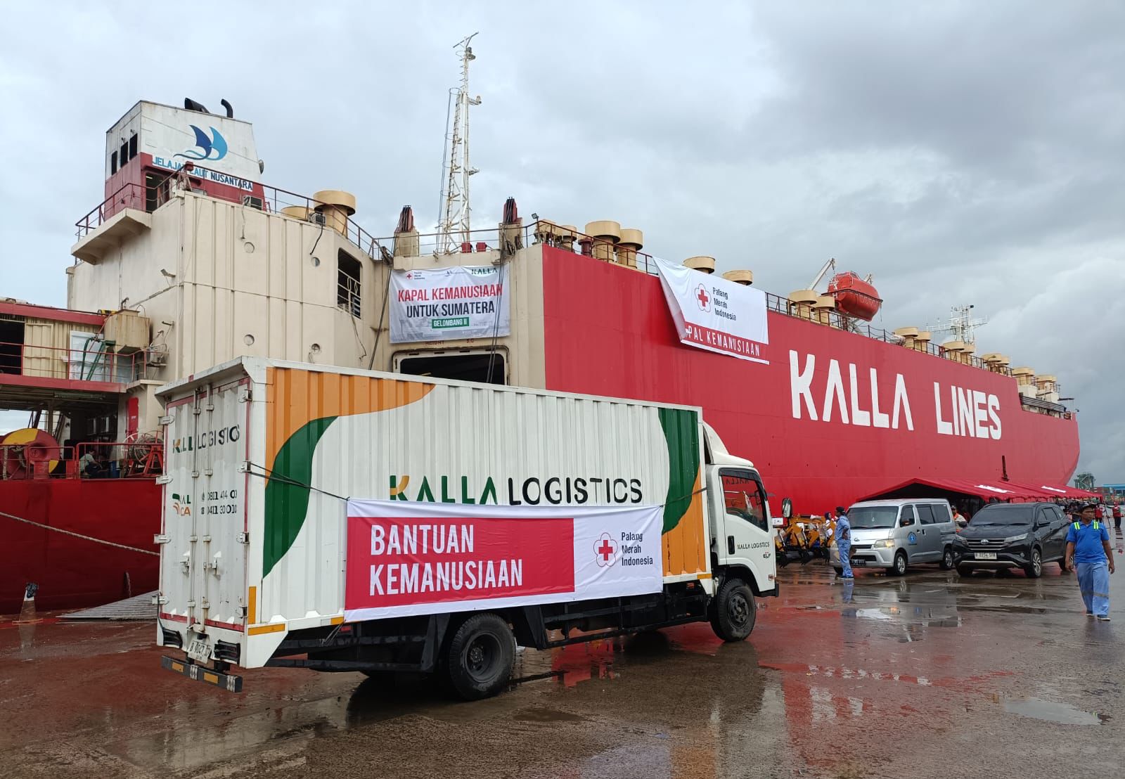 West Area Senior Manager Kalla Logistics, Pieter Yules Nussy, menjelaskan bahwa mobilisasi bantuan dilakukan melalui dua skema utama, yakni pengangkutan logistik dari PMI menuju kapal di Pelabuhan Tanjung Priok serta distribusi jalur darat dari PMI menuju Padang, salah satu wilayah terdampak di Sumatera.