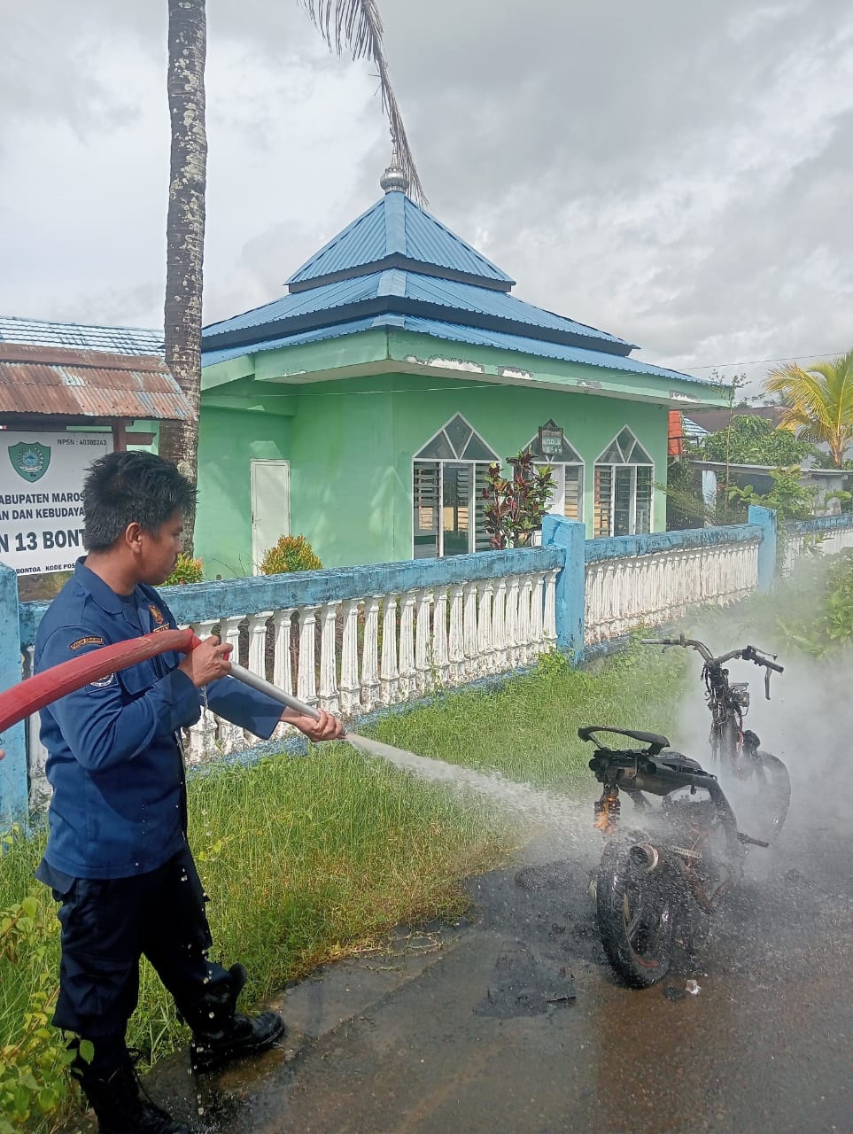“Motor ini sementara dipakai pulang sekolah. Setelah keluar dari gerbang sekolah, terjadi korsleting lalu api muncul. Teman korban langsung melapor ke sektor Damkar Bontoa,” jelasnya.