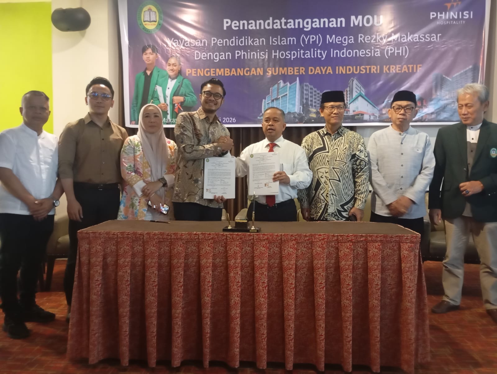 Online24, Makassar – Kolaborasi antara dunia pendidikan dan industri kembali menunjukkan arah baru dalam mencetak generasi profesional masa depan. Yayasan Pendidikan Islam Mega Rezky Makassar resmi menggandeng Phinisi Hospitality Indonesia melalui penandatanganan nota kesepahaman (MoU) yang digelar di Claro Hotel Makassar, Jumat (20/2/2026).