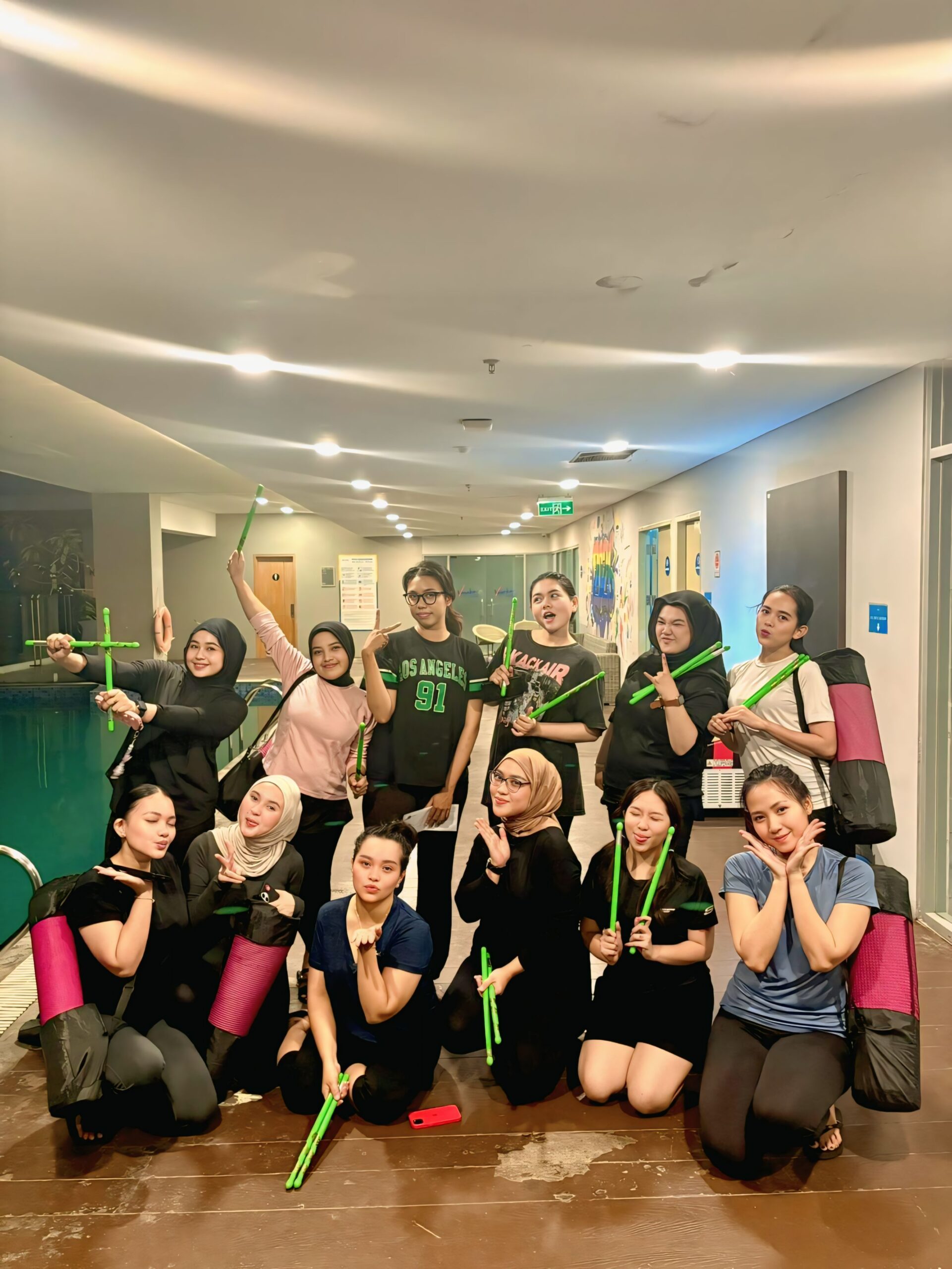 Kegiatan ini dilaksanakan di area samping kolam renang lantai 5 Vasaka Hotel Makassar, menghadirkan suasana yang segar dan penuh energi. Dipandu oleh instruktur professional dari Fast2Fit, sesi Pound Fit berlangsung dinamis dengan perpaduan gerakan kardio, kekuatan, serta iringan musik yang energik.