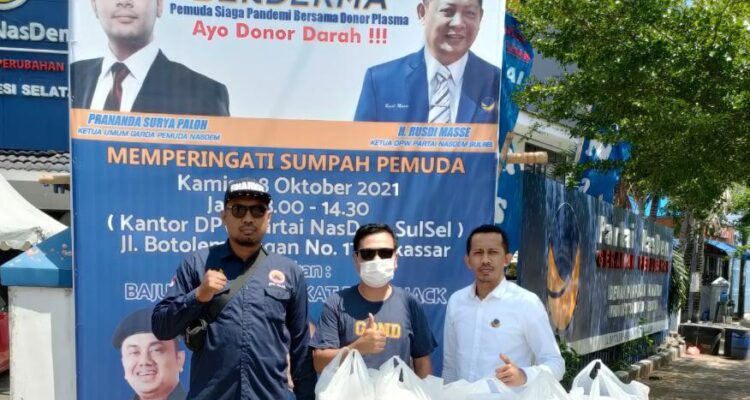 Peringati Sumpah Pemuda, DPW Garda Pemuda NasDem Sulsel Gelar Donor DarahNews, Politik, Regional|October 28, 2021October 28, 2021by Andhika IdrisOnline24, Makassar – DPW Partai NasDem Provinsi Sulawesi selatan melalui DPW Garda