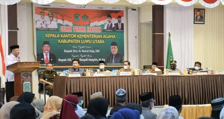 Rusydi Hasyim Jabat Kepala Kantor Kementerian Agama Luwu Utara Gantikan Nurul HaqNews, Regional|July 5, 2022October 1, 2022by kadHikaBdOnline24, Luwu Utara – Dr. H. Rusydi Hasyim M.Ag., resmi menjabat sebagai