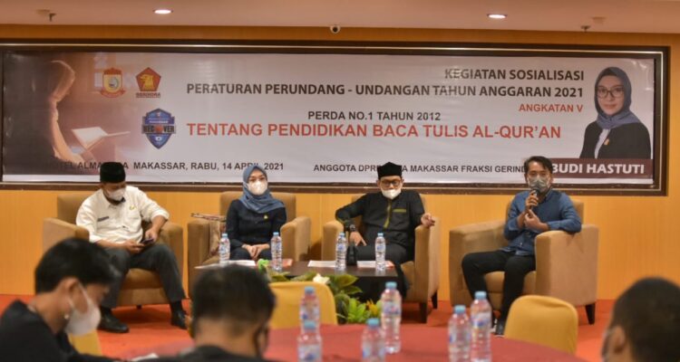Legislator Makassar Budi Hastuti Sosialisasi Perda Baca Tulis Al QuranNews, Regional|April 14, 2021April 15, 2021by Andhika IdrisOnline24, Makassar – Anggota DPRD Kota Makassar, Budi Hastuti menggelar sosialisasi Peraturan